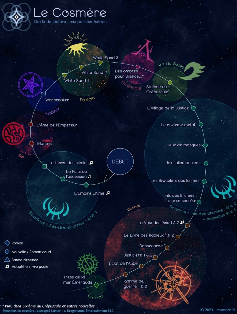 Voici l’une des manière de lire l’univers de Brandon Sanderson