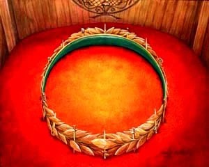 Les épées dissimulées parmi les feuilles de laurier confèrent à la Couronne d’Épée une aura de danger et de sacrifice. Elles rappellent les épreuves auxquelles le roi est confronté pour assumer sa charge et protéger son royaume.