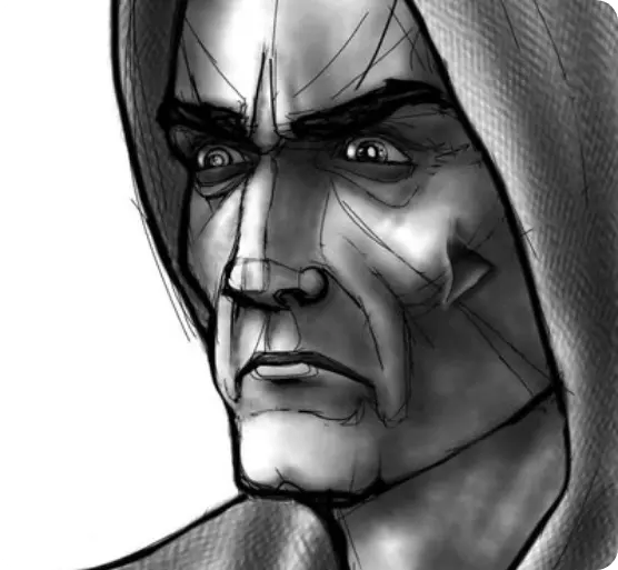 Il a une taille moyenne et une tête rasée de près. Il avait des yeux sombres enfoncés. Ragan, son compagnon de garde à Faldara, avait une cicatrice triangulaire.